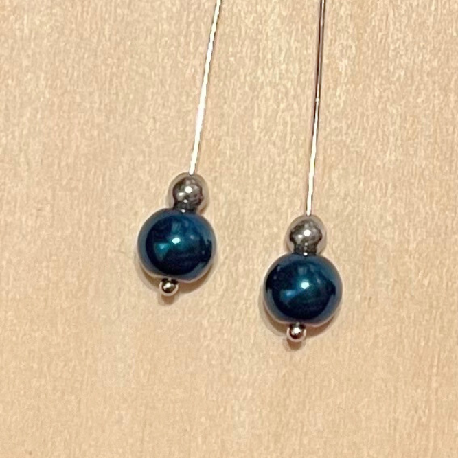 Made with iris blue glass beads and metal beads.